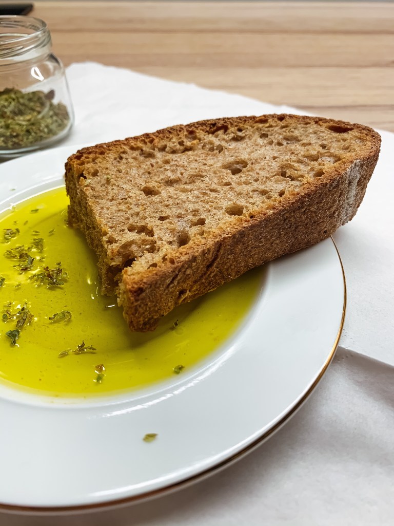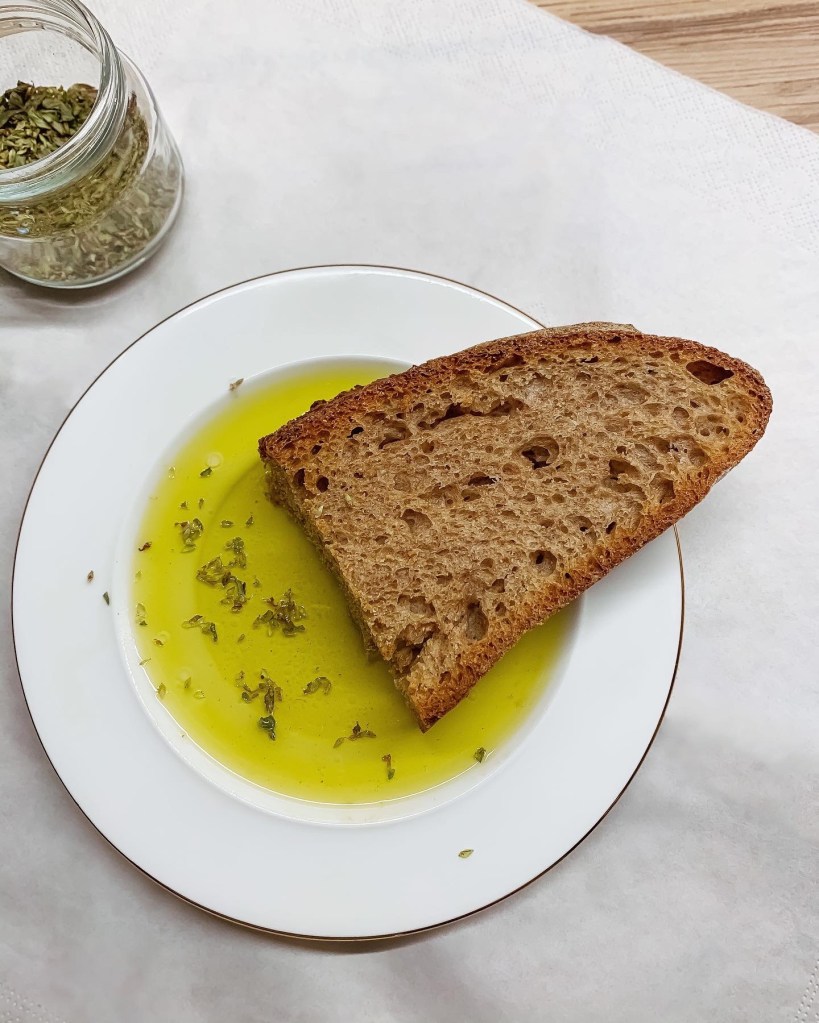 Eccoci alla fine dell’articolo, arriva la parte più divertente: comporre la nostra colazione funzionale. Iniziamo con il tostare leggermente il pane, e quando dico ”leggermente” intendo a fuoco basso, per evitare di bruciacchiarlo troppo. Quell’invitante colore bruno acquistato dalla mollica, è il frutto di una reazione chimica (interazione carboidrati – proteine che avviene durante la cottura) che porta alla formazione di composti ad attività mutagena e cancerogena (detto tra noi in modo semplice ”fanno male alla salute”). Ma il pericolo non sussiste perché noi lo tostiamo leggermente, poi prepariamo un bel caffè amaro o un tè verde, versiamo il nostro olio sul pane ( io a volte preferisco inzupparlo) e aromatizziamo.