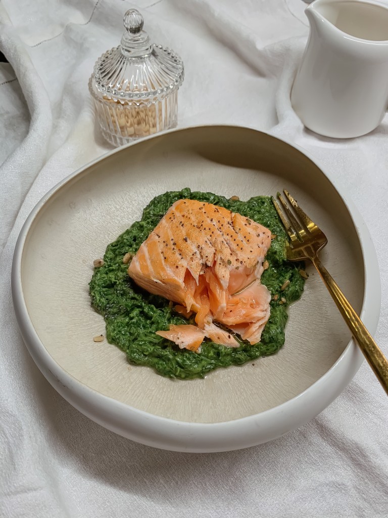 Questa è una ricetta che letteralmente amo sia a livello nutrizionale sia per il sapore delizioso. Il segreto sta nella cottura del salmone e nella preparazione della crema, con le verdure giuste. Per migliorare il processo di digestione dei grassi utilizzo cicoria, indivia, radicchio o rucola, sia cotta sia cruda, con aggiunta di zenzero fresco o altre spezie.