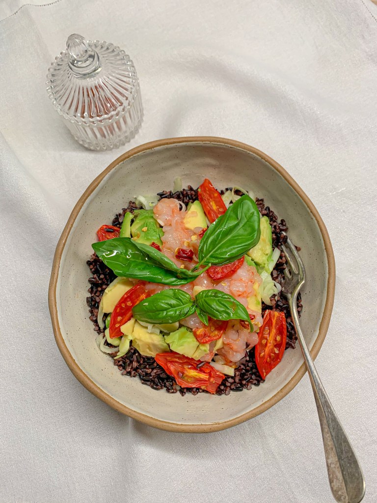 Un piatto unico equilibrato e nutriente a base di riso venere che farà felice linea e palato.