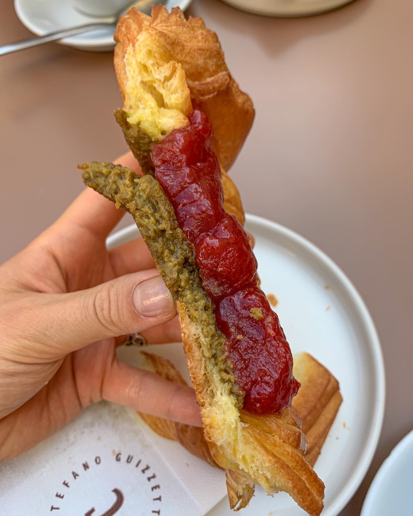 Tutta la pasticceria, le creme, le composte, i biscotti ecc. sono realizzati da loro (punto decisamente a favore). Di conseguenza le brioche sono farcite con le loro creme e composte di frutta.